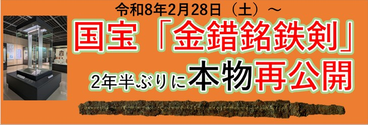 国宝「金錯銘鉄剣」は、2月19日(木)までは、レプリカを展示しています。