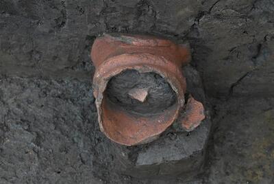 今回の発掘調査では、古墳周囲に配置されていた円筒埴輪および形象埴輪が、まとまった状態で出土し、これらの出土位置や周辺状況の分析から、古墳時代当時、中堤上には多数の埴輪が整然と並べられていた可能性が高いことが明らかとなっております。