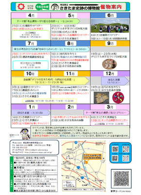 イベント情報 全ての記事 全ての記事 カテゴリ まが玉体験 講座 体験学習 ガイドツアー 史跡探訪 その他 アーカイブ 2026年4月 (8) 2026年3月 (1) 2026年2月 (4) 2026年1月 (4) 2025年12月 (4) 2025年11月 (2) 2025年10月 (2) 2025年9月 (4) 2025年8月 (4) 2025年7月 (4) 2025年6月 (3) 2025年5月 (3) 2025年4月 (6) 2025年3月 (2) 2025年2月 (1) 2025年1月 (5) 2024年12月 (2) 2024年11月 (3) 2024年10月 (5) 2024年9月 (3) 2024年8月 (2) 2024年7月 (7) 2024年6月 (3) 2024年5月 (4) 2024年4月 (6) 2024年3月 (1) 2024年2月 (2) 2024年1月 (2) 2023年12月 (0) 2023年11月 (2) 2023年10月 (1) 2023年9月 (3) 2023年8月 (1) 2023年7月 (3) 2023年6月 (6) 2023年5月 (2) 2023年4月 (7) 2023年3月 (1) 2023年2月 (3) 2023年1月 (2) 2022年12月 (3) 2022年11月 (5) 2022年10月 (5) 2022年9月 (3) 2022年8月 (4) 2022年7月 (6) 2022年6月 (6) 2022年5月 (3) 2022年4月 (4) 2022年3月 (4) 2022年2月 (3) 2022年1月 (6) 2021年12月 (4) 2021年11月 (4) 2021年10月 (5) 2021年9月 (3) 2021年8月 (0) 2021年7月 (8) 2021年6月 (8) 2021年5月 (2) 2021年4月 (2) 2021年3月 (0) 2021年2月 (0) 2021年1月 (0) 2020年12月 (0) 2020年11月 (0) 2020年10月 (1) 1件 1件 5件 10件 20件 50件 100件 まが玉づくり体験再開のお知らせ 投稿日時 : 2021/04/13 管理 カテゴリ: 臨時閉館中より休止していた「まが玉づくり体験」を 4月20日(火) から再開いたします。 新型コロナウイルス感染症拡大防止の対策を取りながら実施していくため、限られた人数、回数での実施となりますが、お時間があればチャレンジしてみてください。 詳しくは「体験・イベント案内」の「まが玉づくり体験」のページをご確認ください。 (下記のリンクからとぶことができます。) https://sakitama-muse.spec.ed.jp/体験・イベント案内/まが玉づくり体験 {{options.likeCount}} {{options.likeCount}} « 209210211212213214215216217 »
