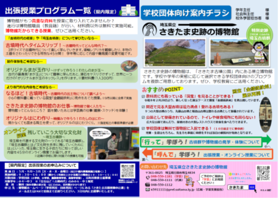 さきたま史跡の博物館では、学校や学年の実態に応じて選択できる学校団体