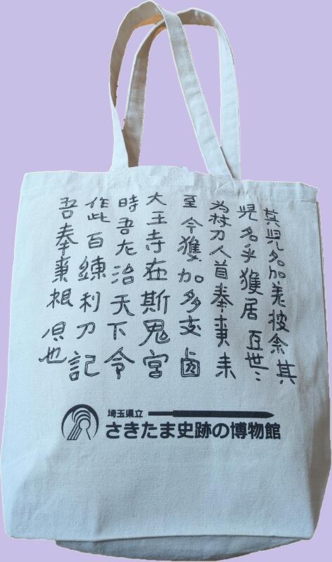 トートバッグ(鉄剣銘文バージョン) 国宝「金錯銘鉄剣」銘文入りのオリジナルバッグ。
