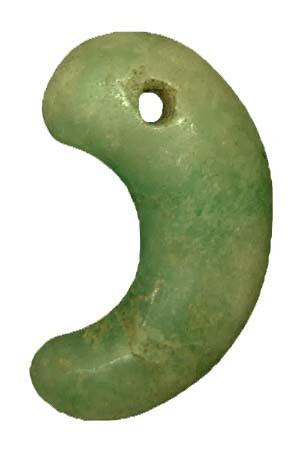 勾玉は湾曲していることに名が由来し、ヒスイ以外にも滑石やメノウといった石、ガラスや土で作られたものもあります。