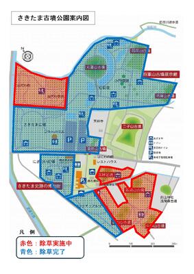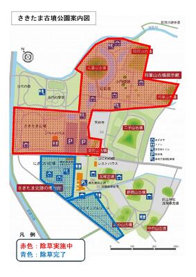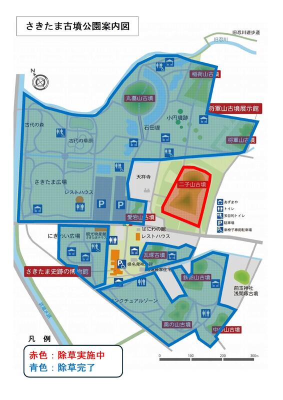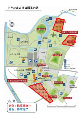 現在(10月14日)さきたま古墳公園の丸墓山古墳、稲荷山古墳、将軍山古墳周辺及びさきたま広場の除草作業が完了しました。古代の森・古代の草原、鉄砲山古墳周辺で除草を実施しております。ご迷惑をお掛けしておりますが、ご理解とご協力をお願いします。